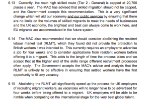 The White Paper has also indicated – pending full review by spring – that the min. salary threshold to be able to access the jobs market could be £30,000, but importantly, graduate entry jobs would be subject to a lower (unspecified) salary threshold requirement and relaxed rules for employers keen to hire them.